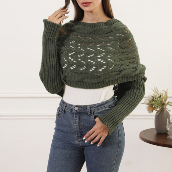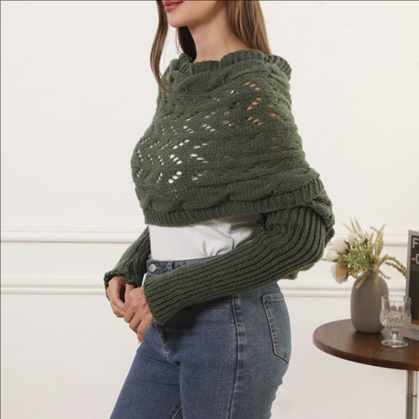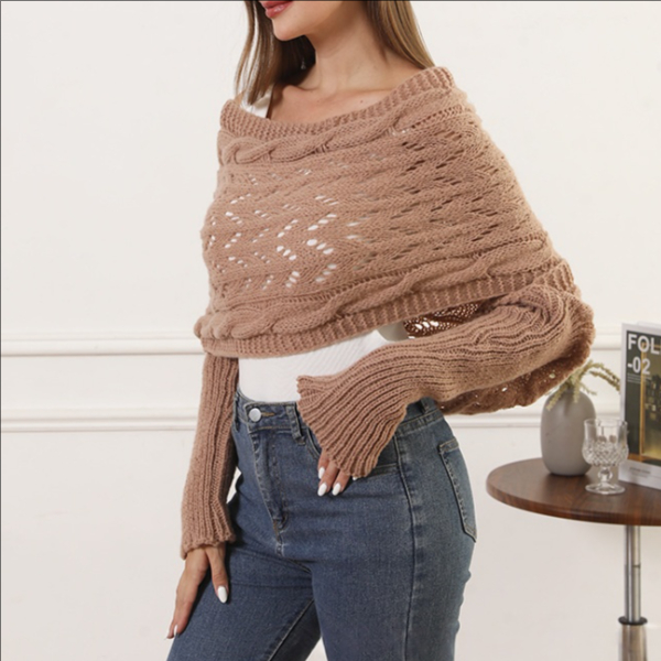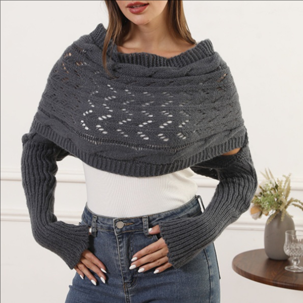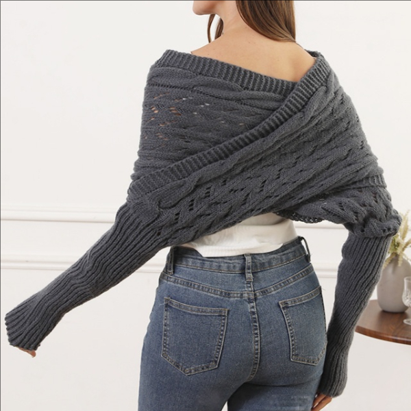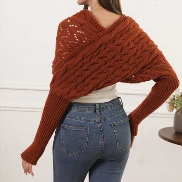 Fashion Open-Knit Sweater Shrug with Scarf-Long Sleeve Wrap Shrug for Women