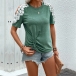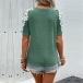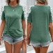 Fashion Open-shoulder Lace Spliced Short Sleeve Ruched Shirt