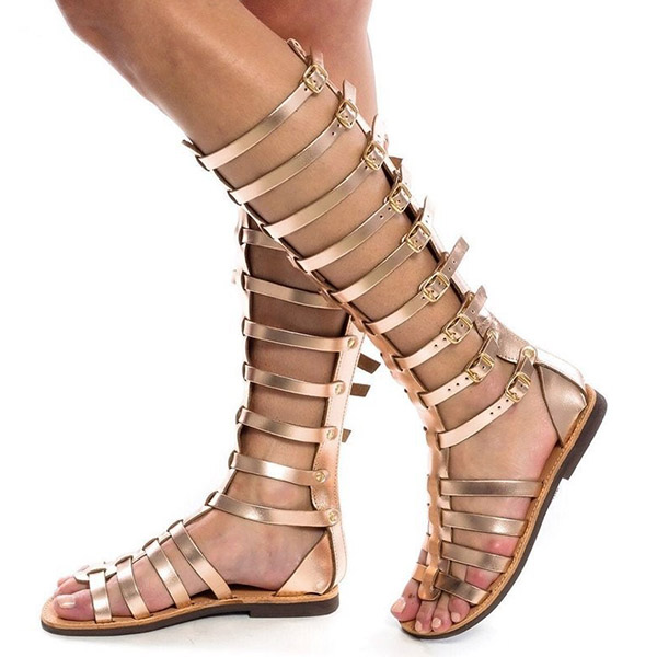 Fashion Open-toe High-Cut Hollow Out Buckle Roman Boots