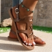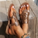 Sandales plates en simili cuir PU à bout ouvert et tendance
