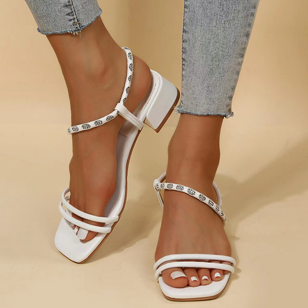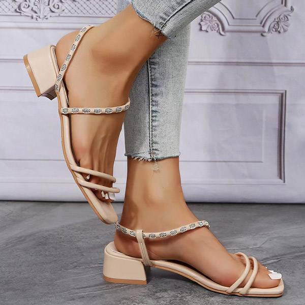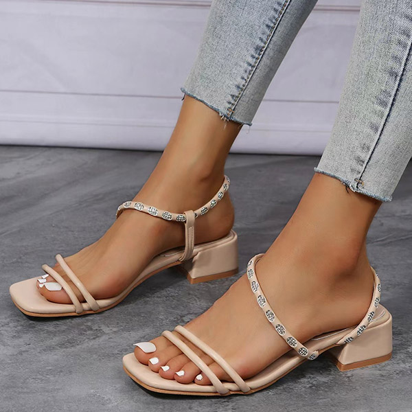 Fashion Open-toe Rhinestone Block Heeled Sandals
