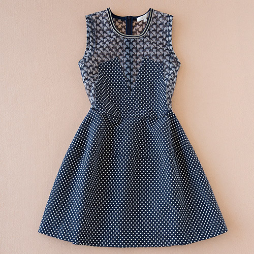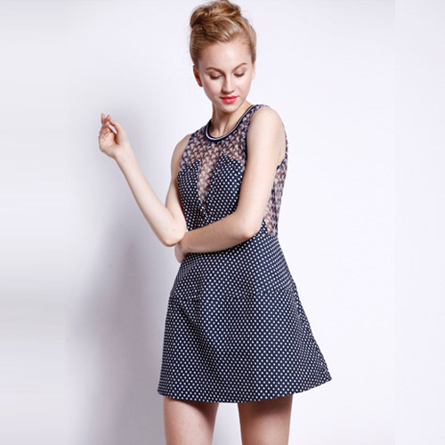 It features organza spliced design,sexy and chic. Dots pattern makes it look