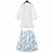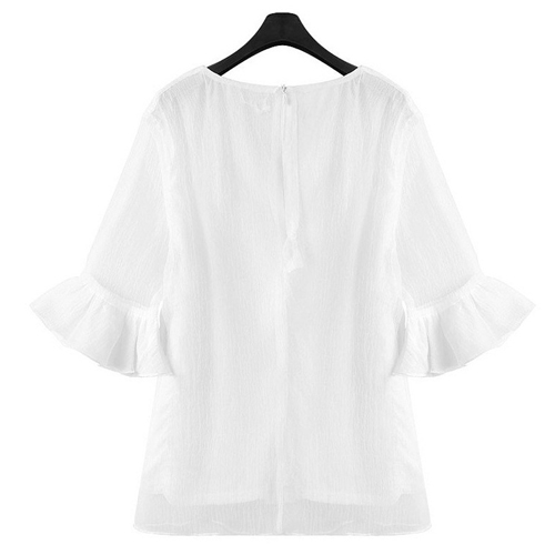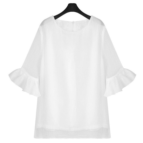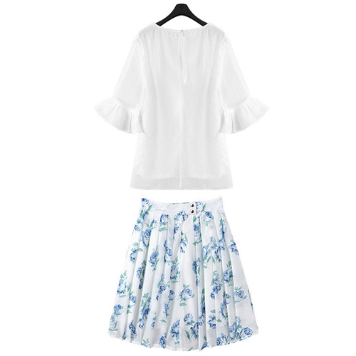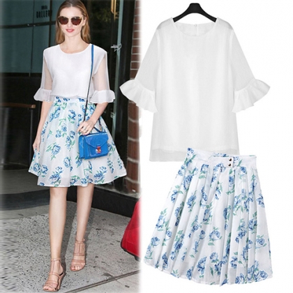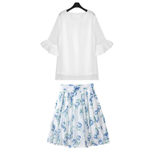 Consists of two pieces. Tops with solid color,round neck and flouncing sleeve,simple but filled with