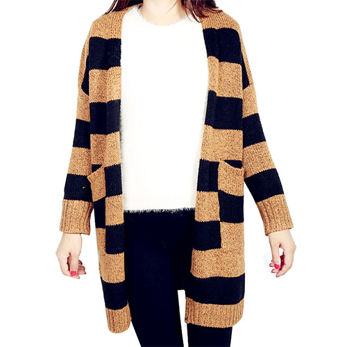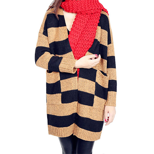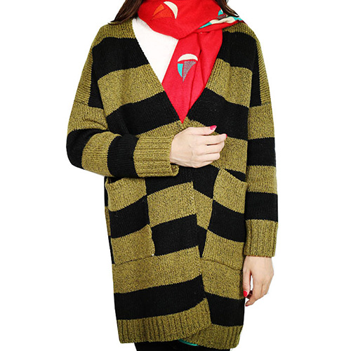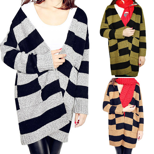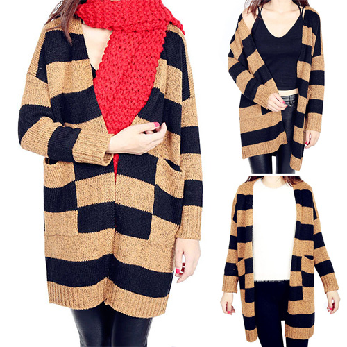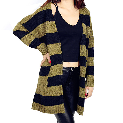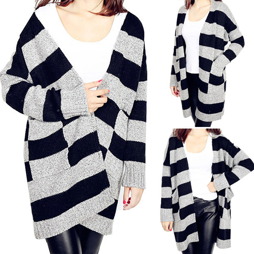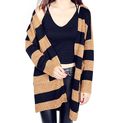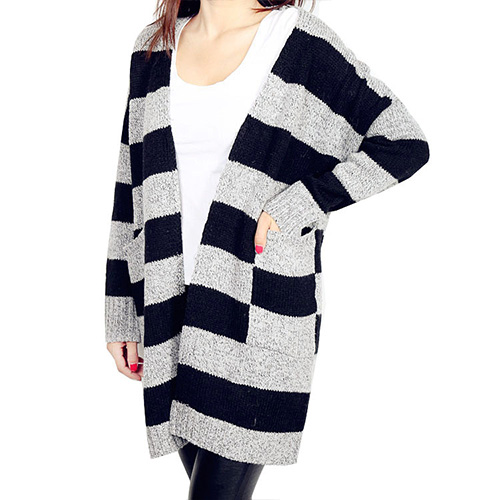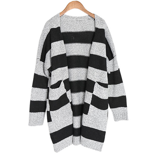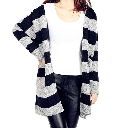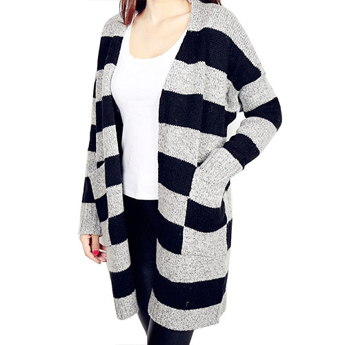 with long sleeve, open-front and striped design, this sweater cardigan would infuse