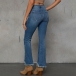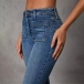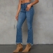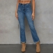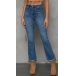 This is a trendy and stylish jeans that combines classic denim with modern design elements. The patch pockets add a utilitarian touch to the jeans, while the mid-rise fit offers a comfortable and flattering silhouette. The fray hemline detail adds a touch of edge and personality to the jeans, creating a laid-back and casual vibe.