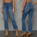 Fashion Patch Pockets Mid-rise Fray Hemline Old-washed Denim Jeans