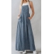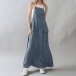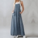 Fashion Patch Pockets Self-tie Shoulder Strap Old-washed Denim Dress