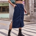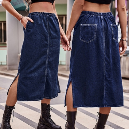 This skirt features a classic denim design with a modern twist. The patch pockets on the skirt add a trendy and fashionable touch, while the slit design creates a flattering and feminine silhouette. Hope you like it.
