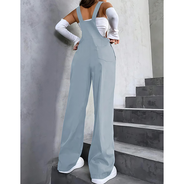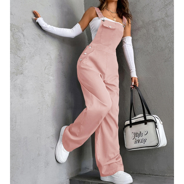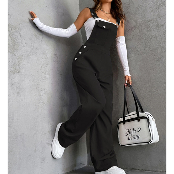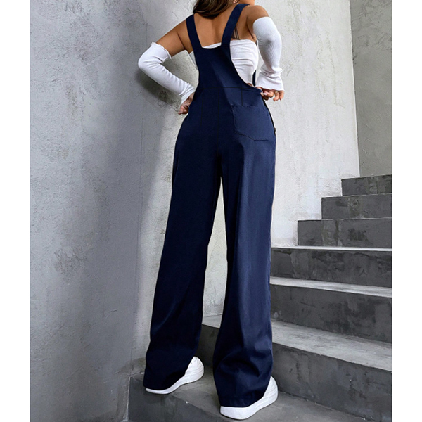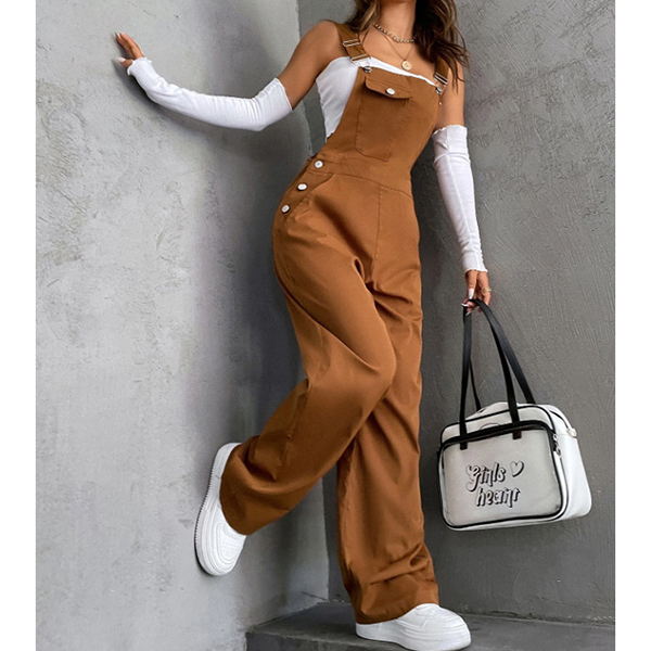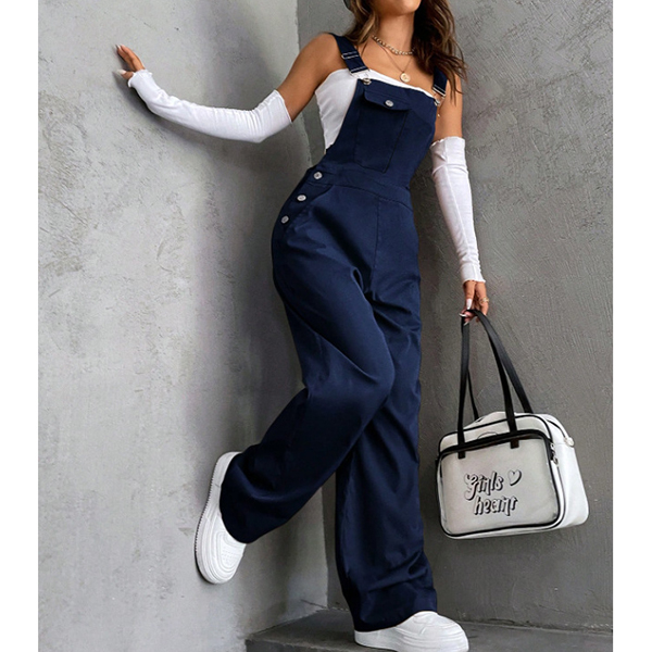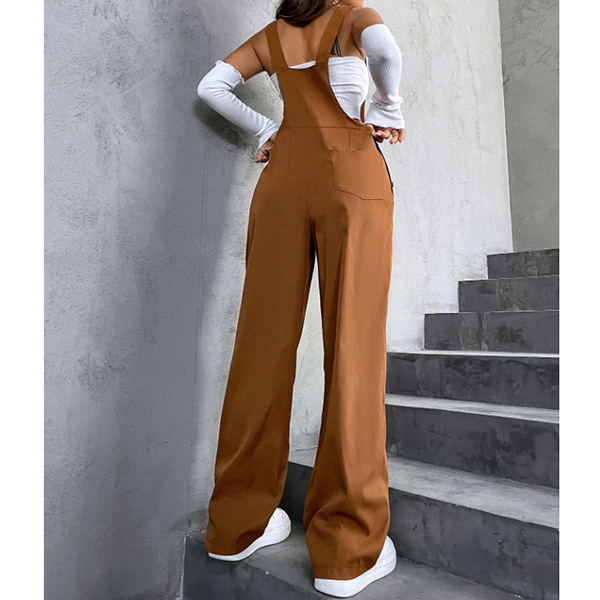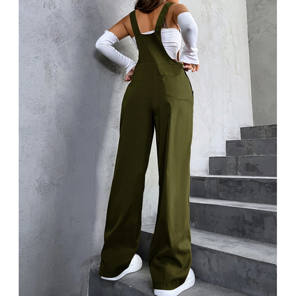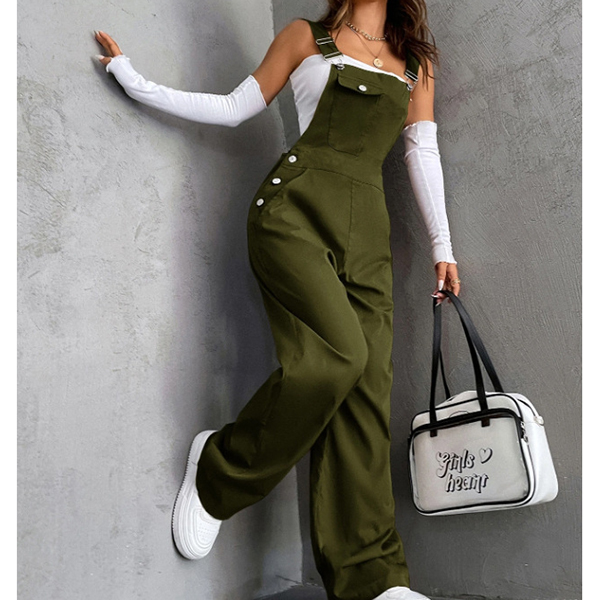 Fashion Patch Pockets Straight-cut Adjustable Shoulder Strap Suspender Jumpsuit