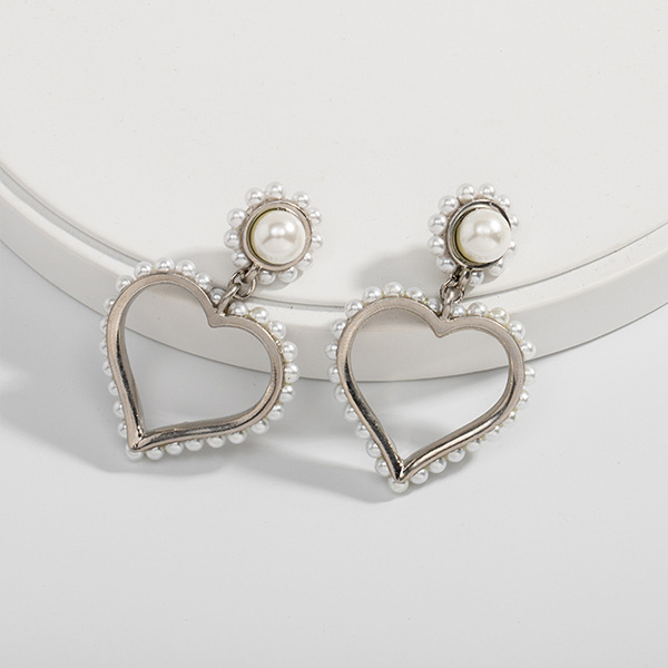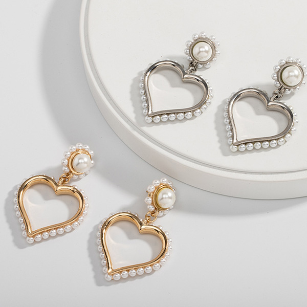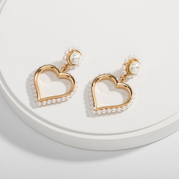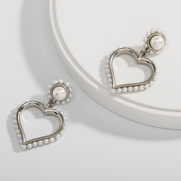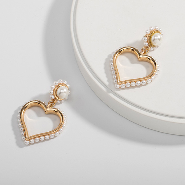 Fashion Pearl Inlaid Heart Shaped Stud Earrings