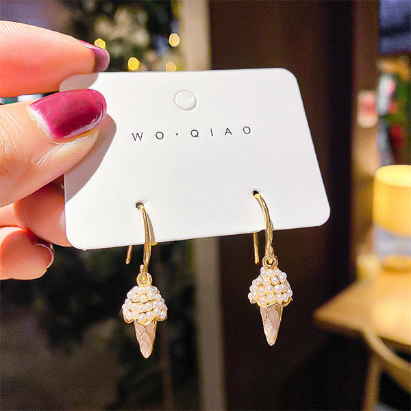 Fashion Pearl Inlaid Ice Cream Shaped Earrings