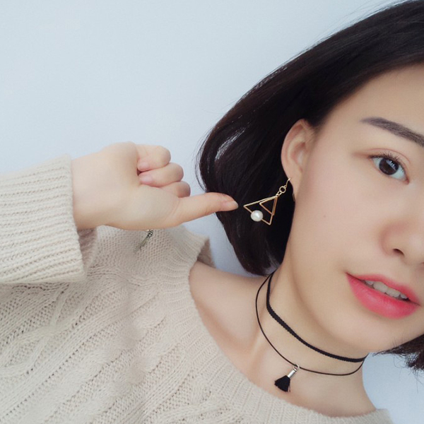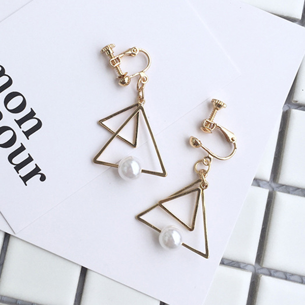for your optional:ear-hook style and ear-clip style. Double triangle shaped design,decorated with a pearl,delicate and chic.