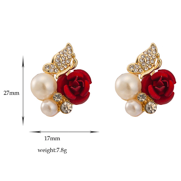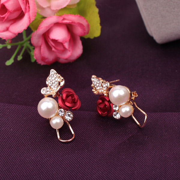 Fashion Bead Rhinestone Inlaid Camellia Shaped Ear Clips