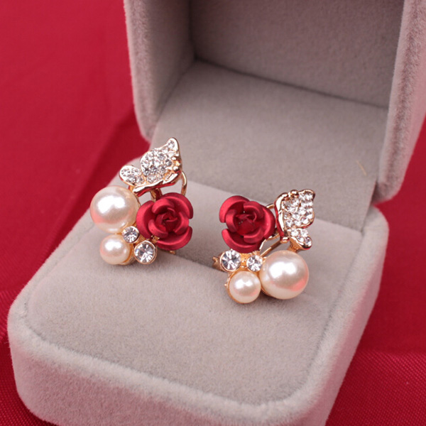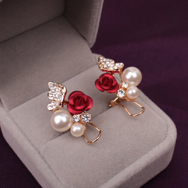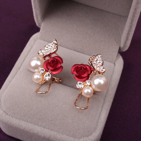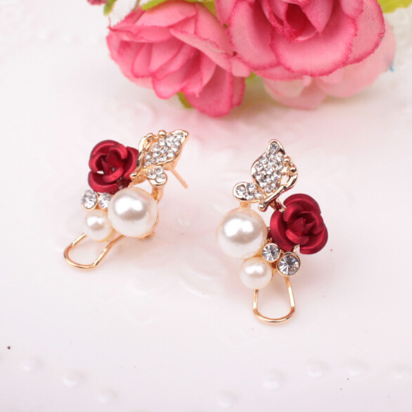 Boost your beautiful charms with the help of this pair of ear clips. Clips design makes it fit for different people. Camellia shape,inlaid with rhinestone and bead details,sweet and shinning. A perfect addition for your daily look.