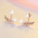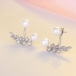 Fashion Pearl Rhinestone Inlaid Leaf Shaped Stud Earrings