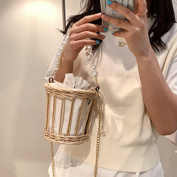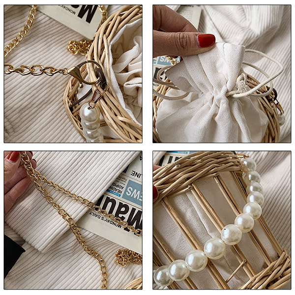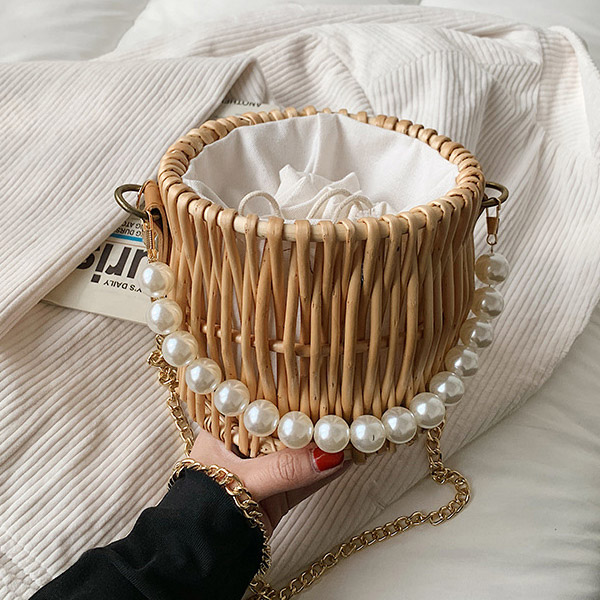 Wanna achieve for a chic and stylish street look? Then this straw bag would be a perfect addition. The straw material and pearl details make it look so distinctive. When you go out with this straw hat,you can easily win more eyes.