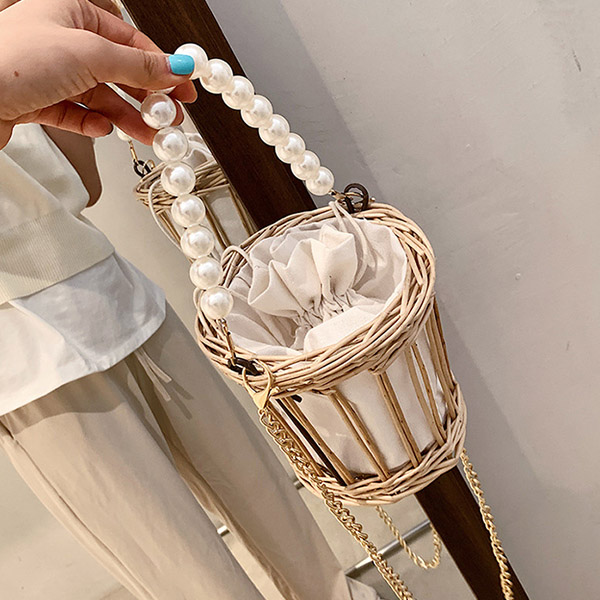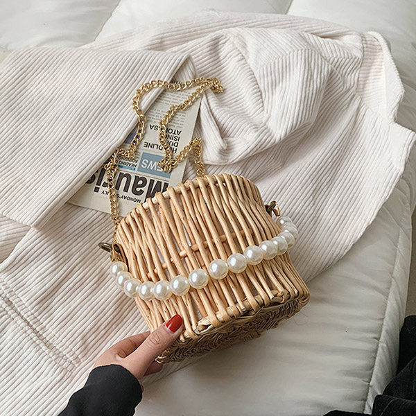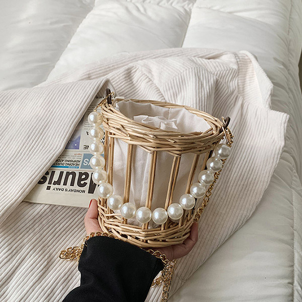 Fashion Pearl Straw Bag One-shoulder Messengers Bag