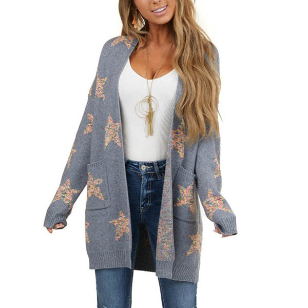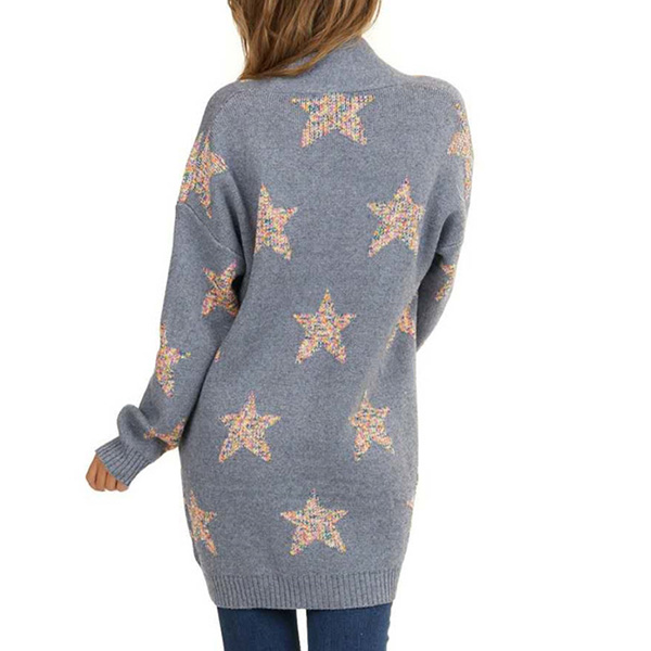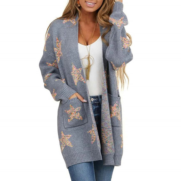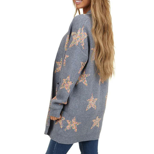 Fashion Pentagram Printed Long Sleeve Loose Knit Cardigan