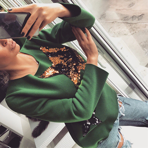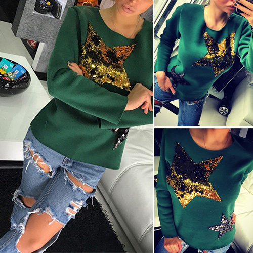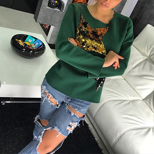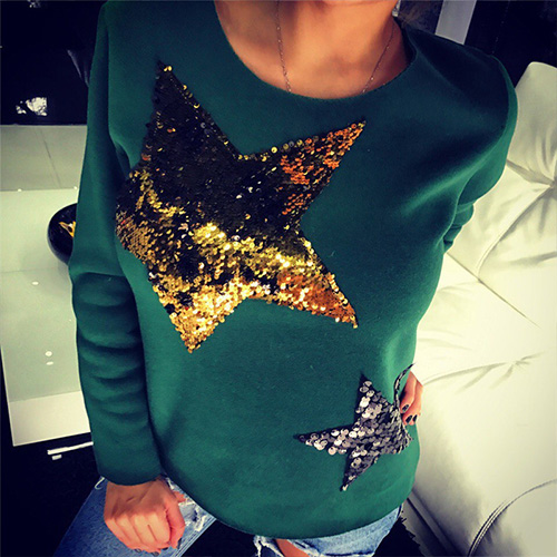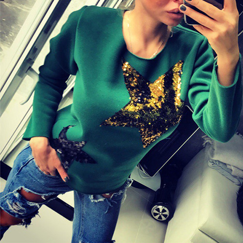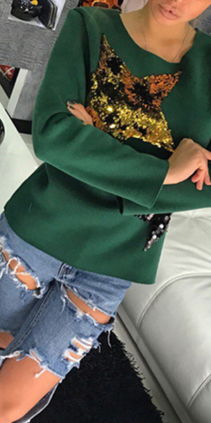 Adopt chic pentagram sequin spliced design; it can effortlessly bring you a stylish and eye-catching