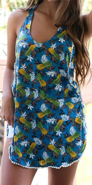 This tank tops features pineapple printed pattern,with an irregular hem,chic and