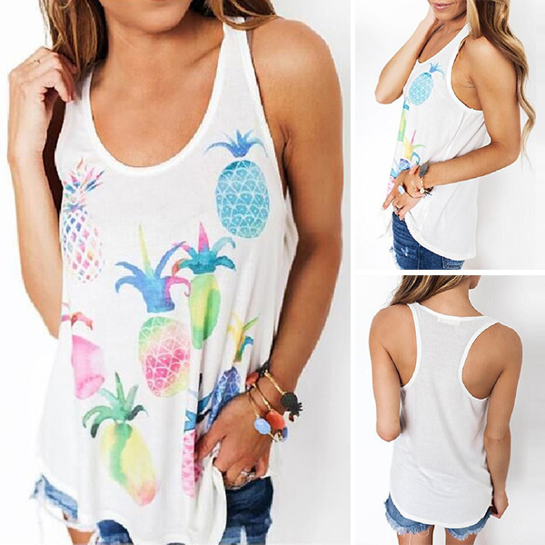 silhouette,this tank top is sure to give you a cool and comfortable day. Plus,its pineapple printed pattern design lends you a