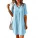 Fashion Plaid Polo Neck Short Sleeve Blouse Dress