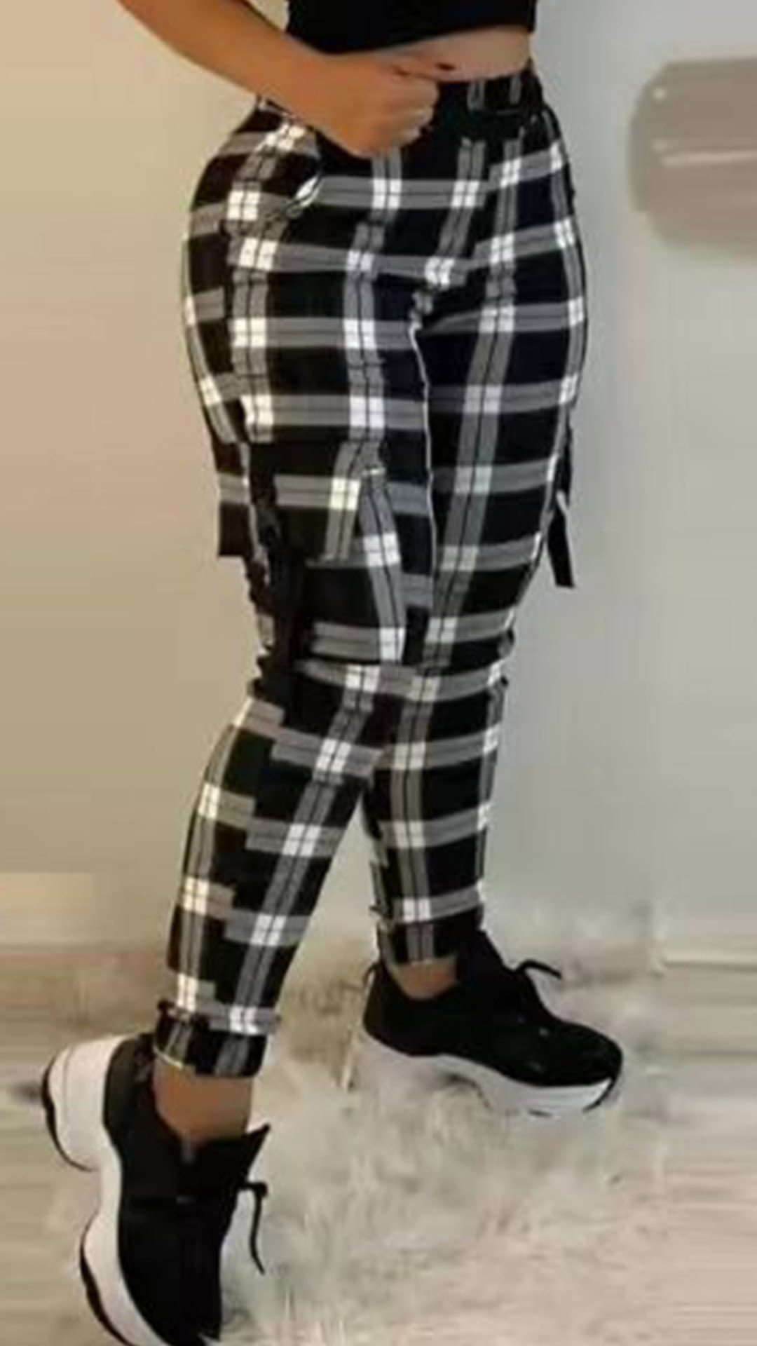 These pants feature a classic plaid pattern and side patch pockets, creating a stylish and versatile look. Pair them with a crisp white shirt or a cozy sweater for a fashion look.