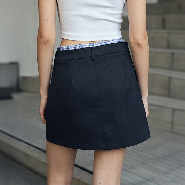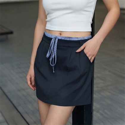 Fashion Plaid Spliced Drawstring Waist Mini Skirt