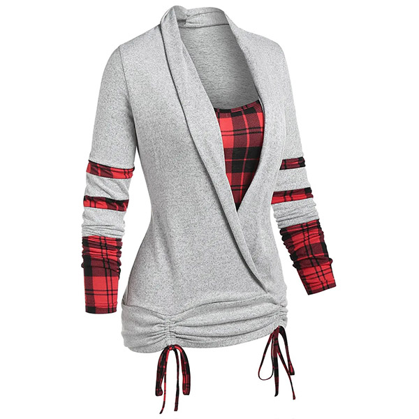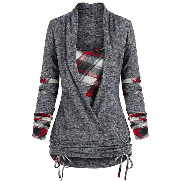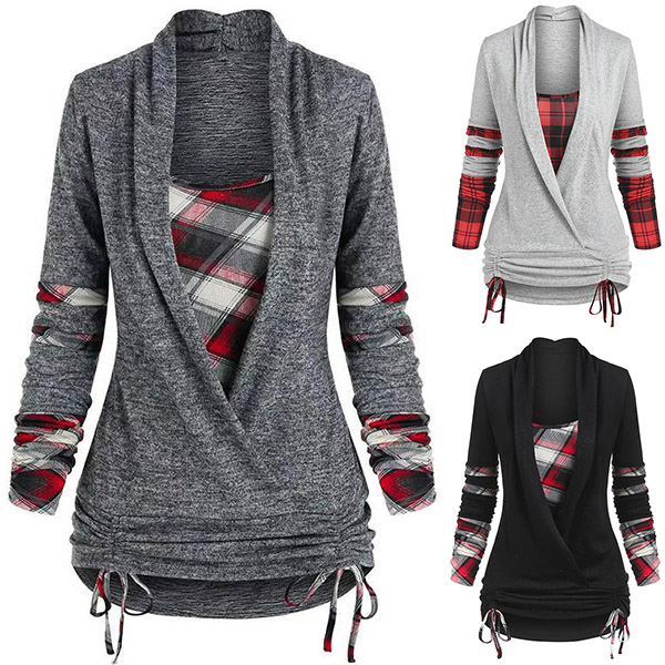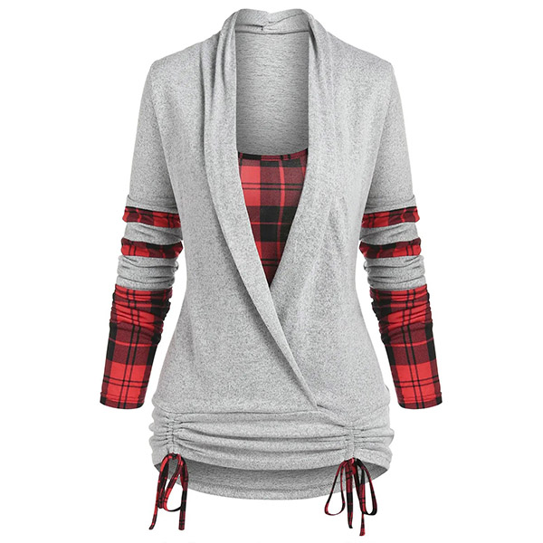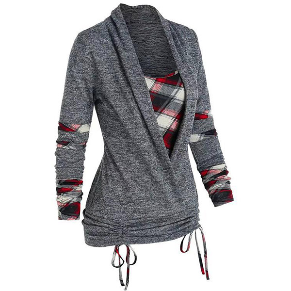 Wanna try a different style sweatshirt? Then you can make your eyes focused on this piece. The plaid spliced and drawstring hem design make this piece look more attractive. Meanwhile,its soft and breathable fabric can offer you a comfortable day. A perfect addition for a laid-back and fashionable daily look.