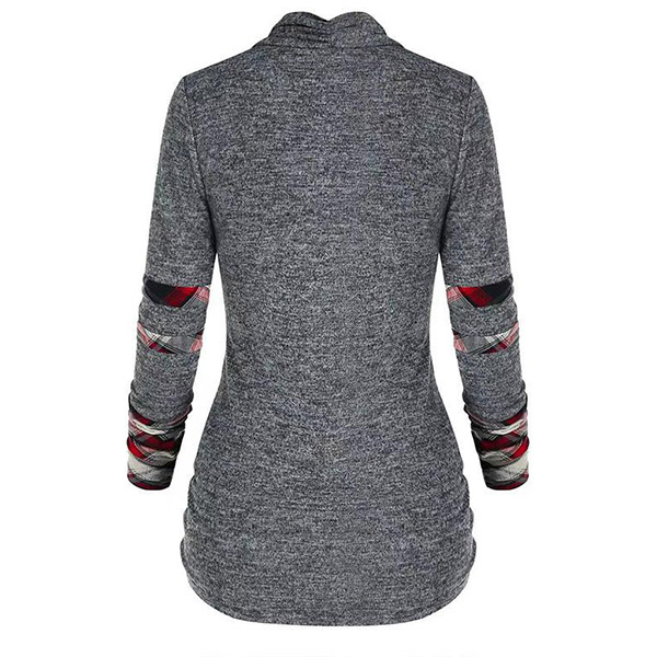Fashion Plaid Spliced Long Sleeve Drawstring Hem Sweatshirt