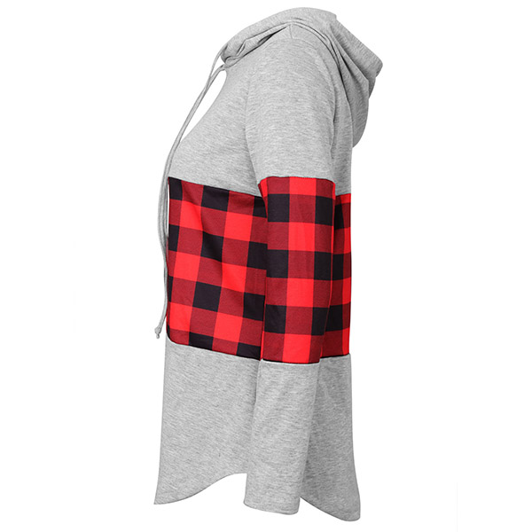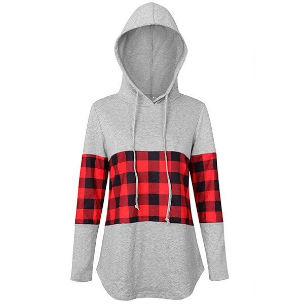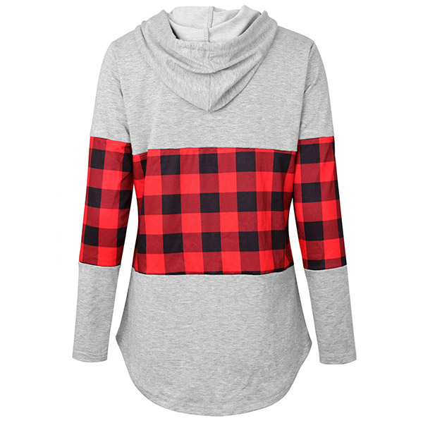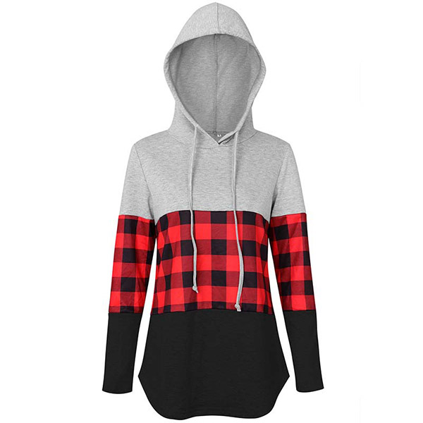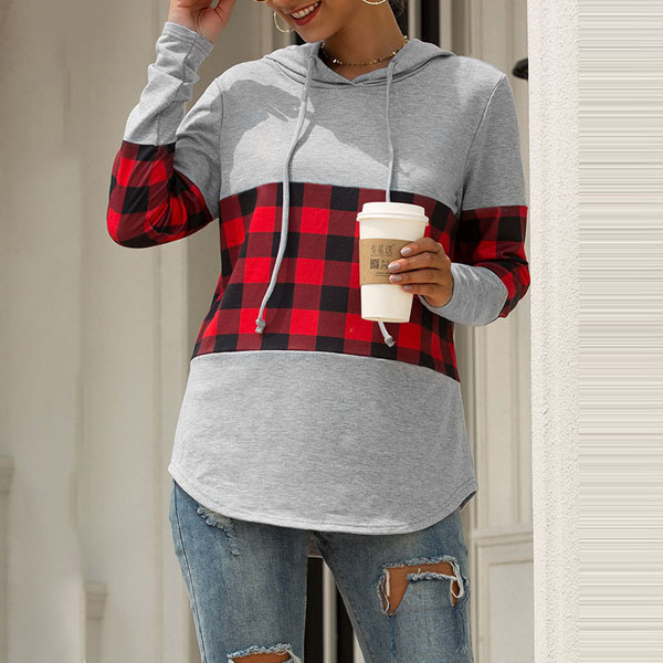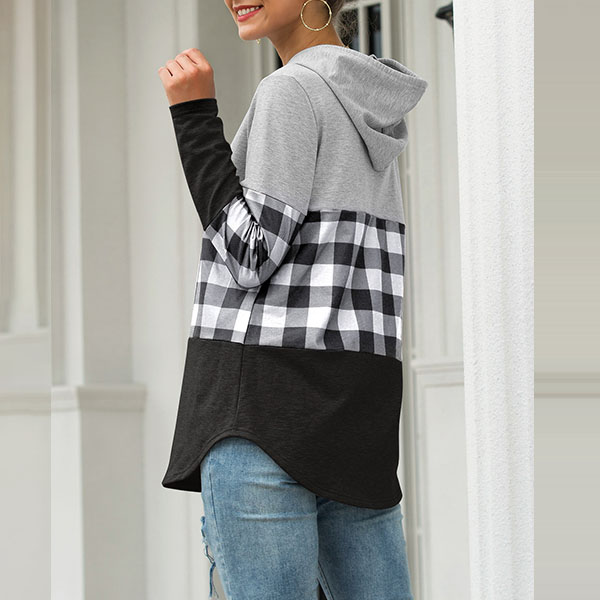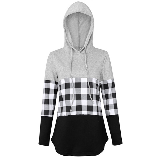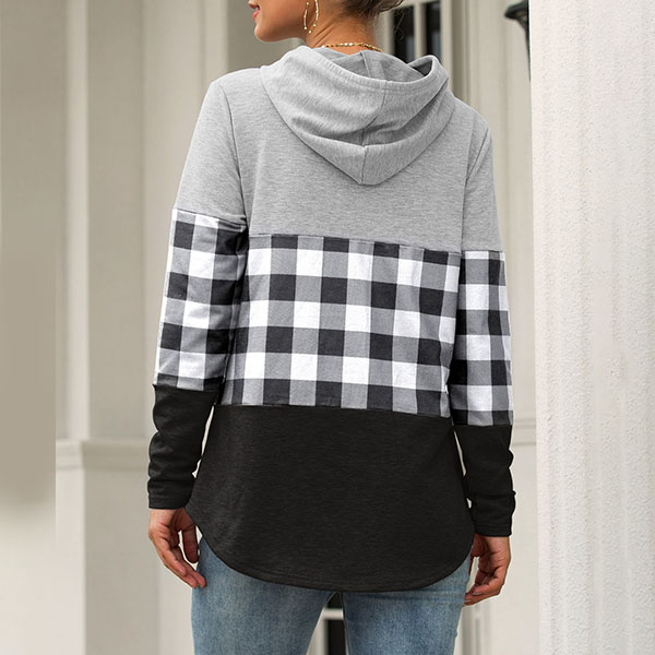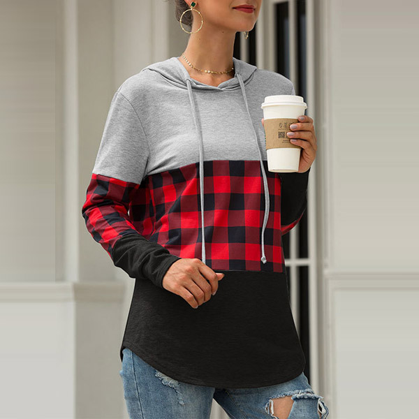 Fashion Plaid Spliced Long Sleeve Hooded Sweatshirt