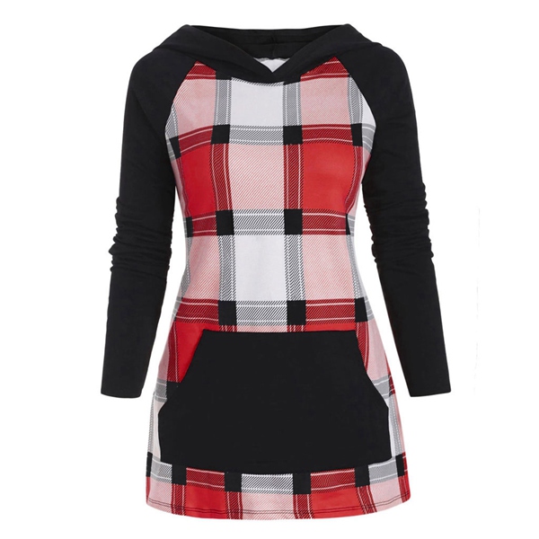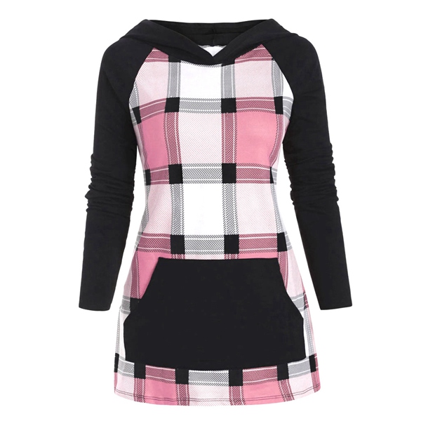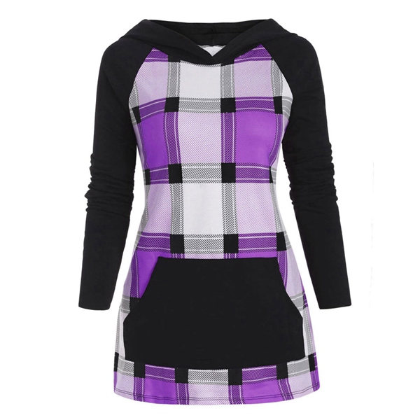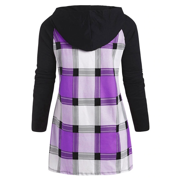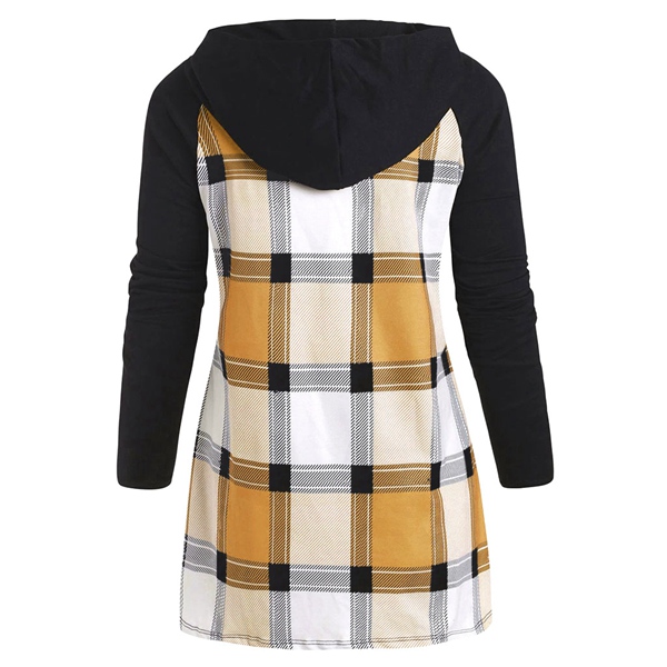 Fashion Plaid Spliced Long Sleeve Hooded Sweatshirt