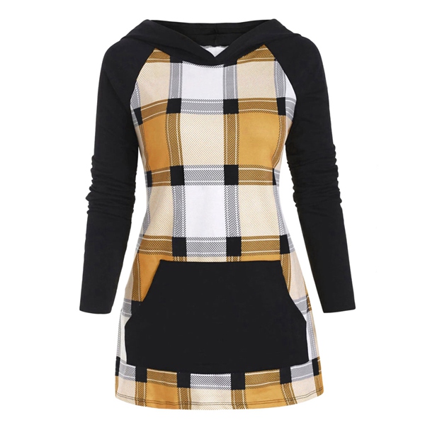 For a casual and stylish autumn look,you can have a try this sweatshirt! The plaid spliced design makes this piece look more attractive,while the long sleeve,hooded silhouette and front kangaroo pocket design maintain the classic design style. You can simply matching with your jeans to enjoy your day!