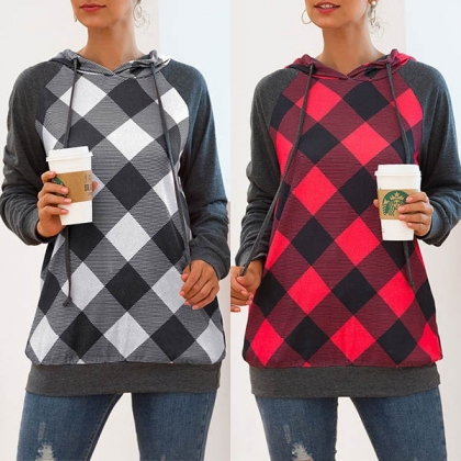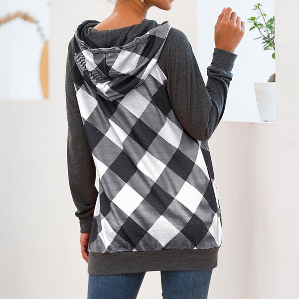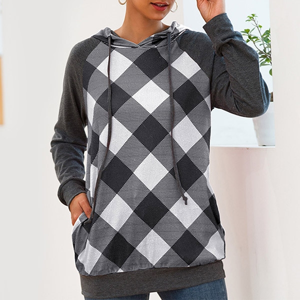 Get into the autumnal mode with the help of this sweatshirt. The plaid spliced design make this