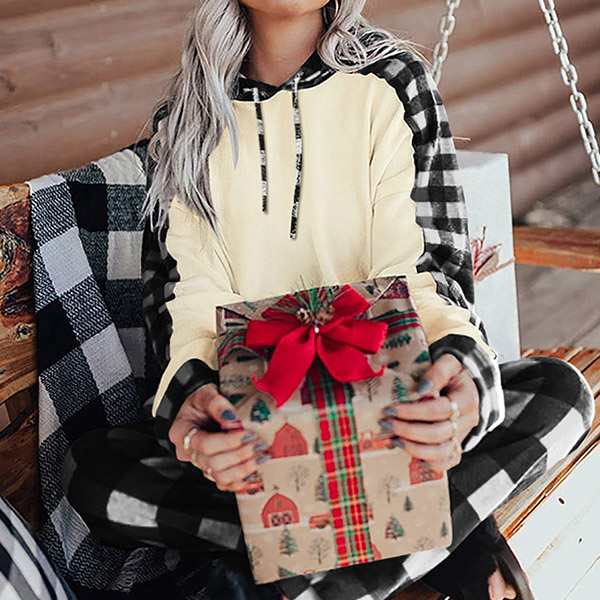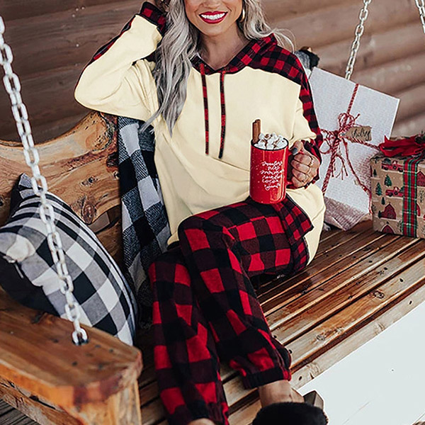 As for your sports time and casual weekends,this cozy yet stylish sports suit can easily strike your mind. The plaid element design will make it look more stylish and popular. Including a long sleeve hooded loose sweatshirt and a plaid pants,its soft and breathable fabric can ensure you a comfortable day. Add them to your casual wardrobe ensemble!