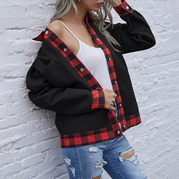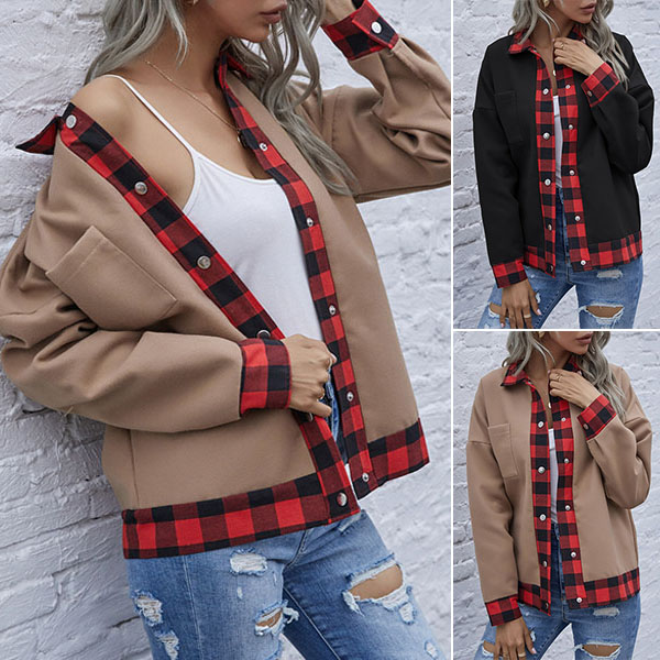 When the days get cold,you can just slip into this coat to stay warm. The plaid spliced element design makes this piece look more stylish and attractive. Finished with long sleeve and POLO collar design,this coat is worth to be your staple in these cold days.