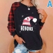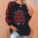 Fashion Plaid Spliced Long Sleeve Round Neck Christmas Printed T-shirt