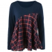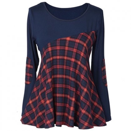 The swing dress is completed with plaid spliced design and long sleeve round neck patterns,