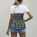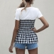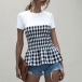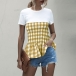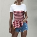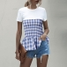 Fashion Plaid Spliced Short Sleeve Round Neck T-shirt