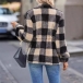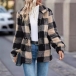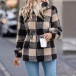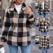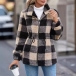 Fashion Plaid Stand Collar Long Sleeve Drawstring Waist Plush Jacket