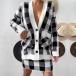 Fashion Plaid Two-piece Knitted Set Consist of Cardigan and Skirt