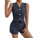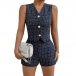 This two-piece suit set features a plaid pattern with a vest and shorts, creating a chic and versatile look. It is perfect for creating a polished and put-together outfit.