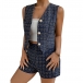 Fashion Plaid Two-piece Suit Set Consist of Vest and Shorts