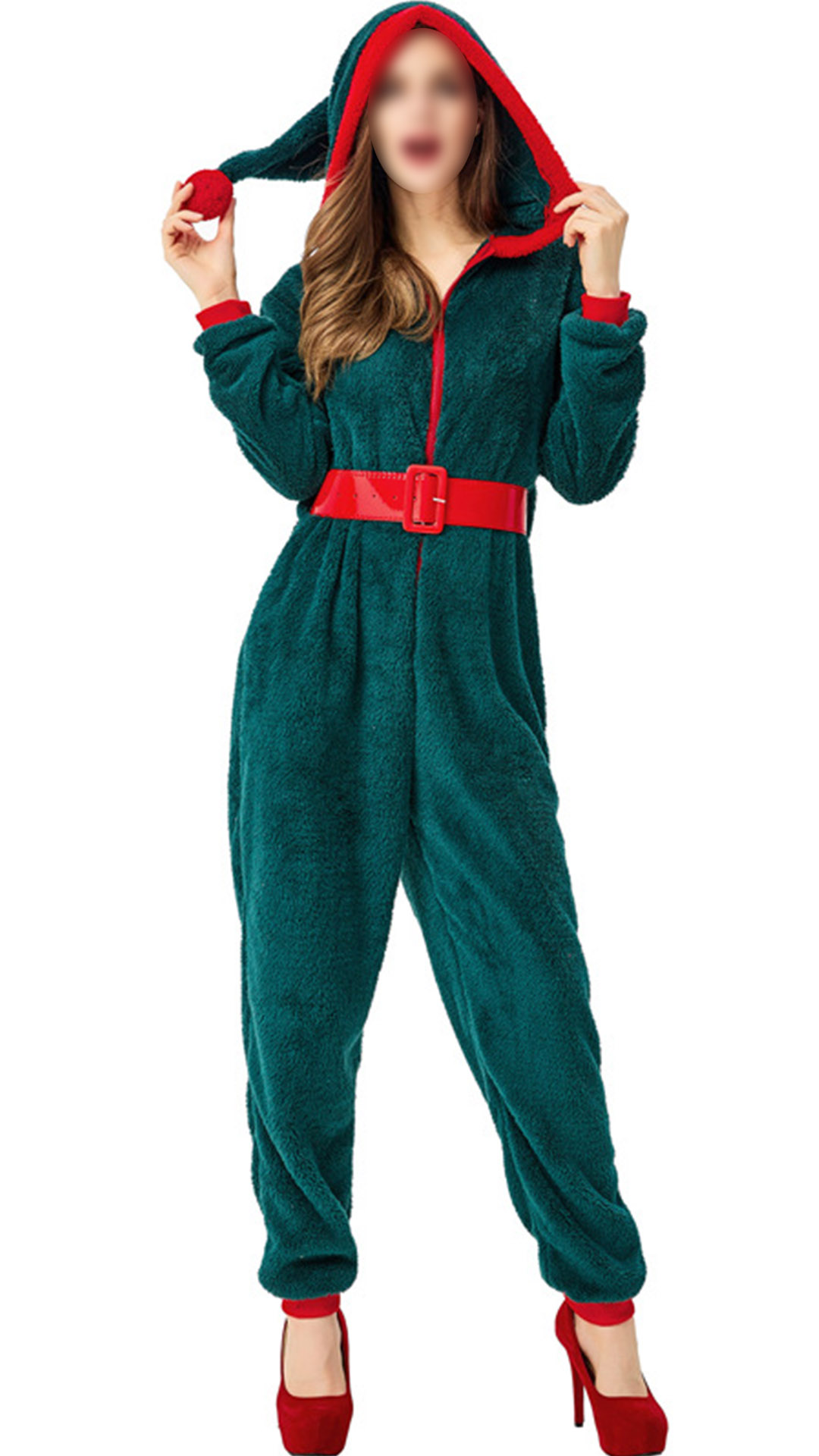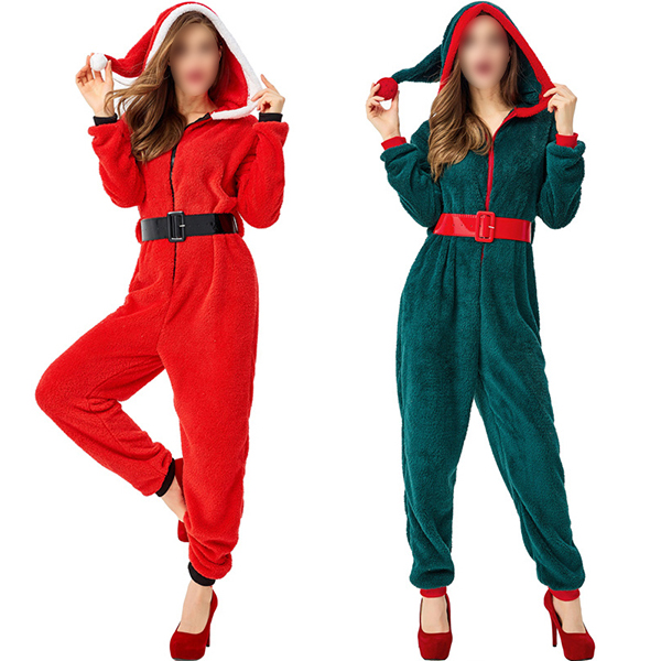 How about this jumpsuit? The hood features a cute and playful design to add a touch of festive charm. With a comfortable and relaxed fit, it allows for easy movement while keeping you warm during chilly winter days. Whether you're lounging at home or attending a costume party, this Jumpsuit is the perfect choice for adding a touch of fun and fashion to your holiday wardrobe.