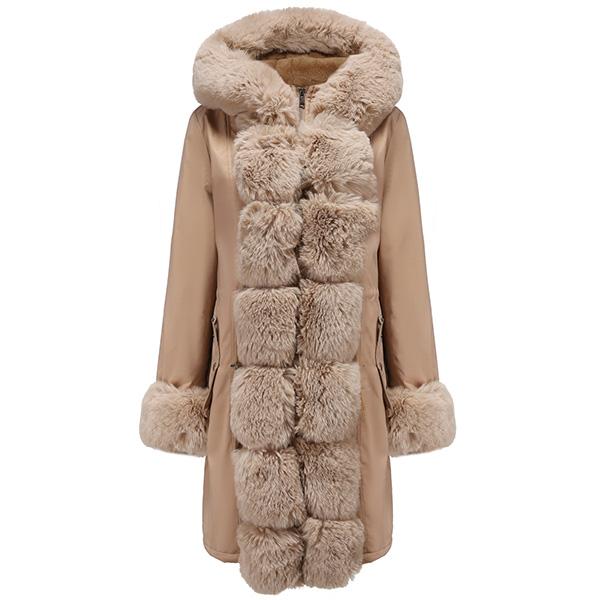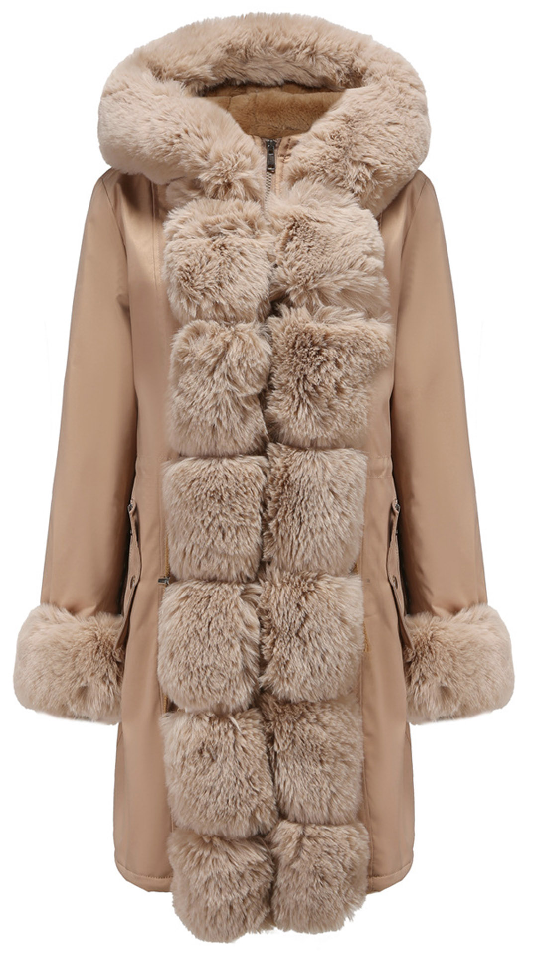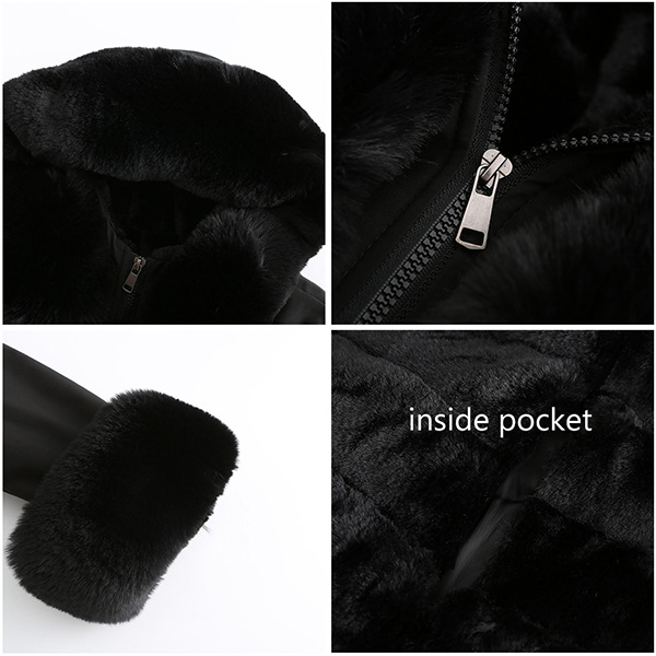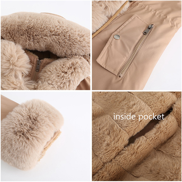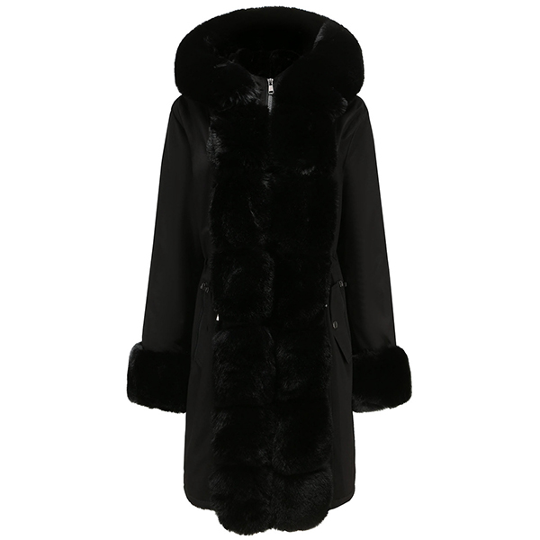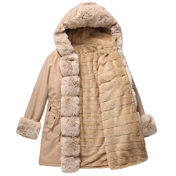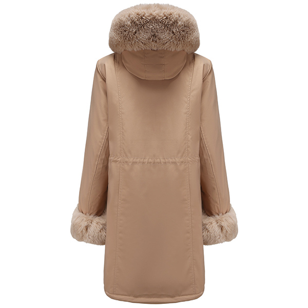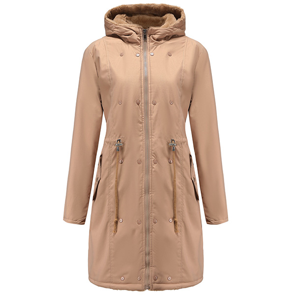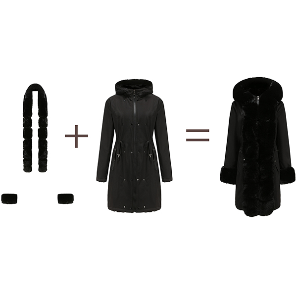 Fashion Plush Lined Detachable Hooded Drawstring Warm Coat
