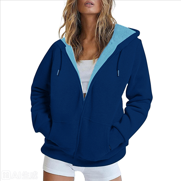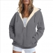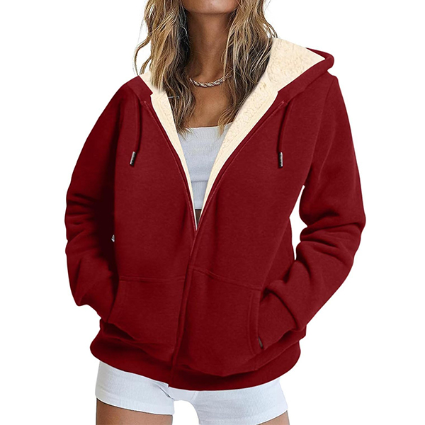 Fashion Plush Lined Drawstring Hooded Long Sleeve Sweatjacket