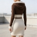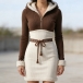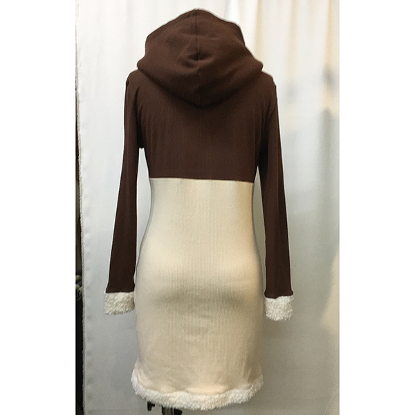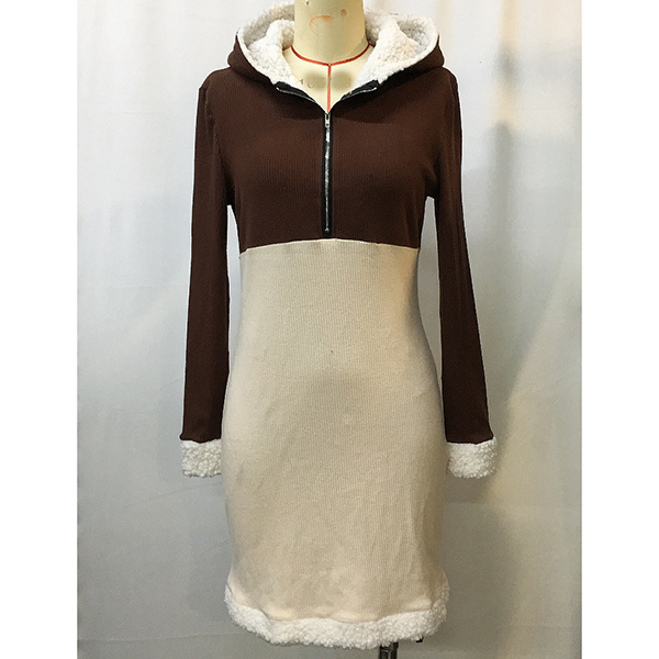Fashion Plush Lined Hooded Long Sleeve Contrast Color Dress with Belt
