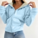Fashion Plush Lined Hooded Long Sleeve Sweatshirt Jacket