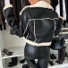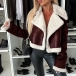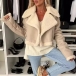 Fashion Plush Lined Large Notch Lapel Long Sleeve Artificial Leather PU Crop Jacket