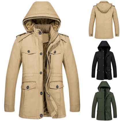 Fashion Plush Lined Long Sleeve Hooded Jacket for Men